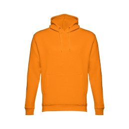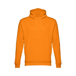 Sweatshirt (unisexe) avec capuche en 50% coton et 50% polyester (320 g/m²) et intérieur molleton. La capuche comprend des œillets et un cordon de serrage coloré. Sweatshirt avec poche marsupiale et côte 1x1 aux poignets et à la taille. Tailles: XS, S, M, L, XL, XXL