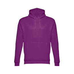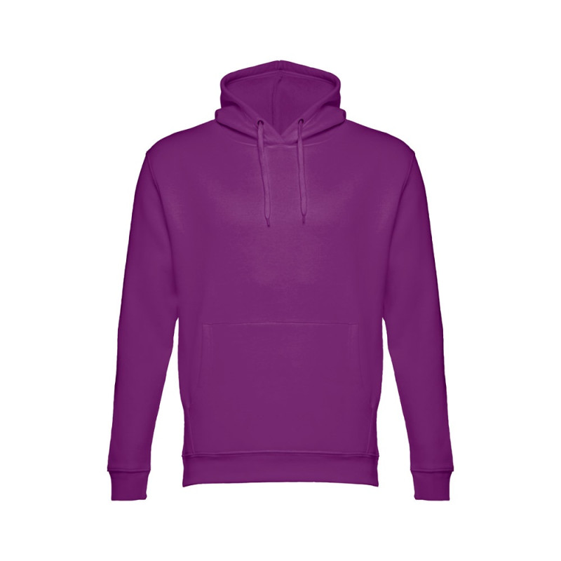 Sweatshirt (unisexe) avec capuche en 50% coton et 50% polyester (320 g/m²) et intérieur molleton. La capuche comprend des œillets et un cordon de serrage coloré. Sweatshirt avec poche marsupiale et côte 1x1 aux poignets et à la taille. Tailles: XS, S, M, L, XL, XXL