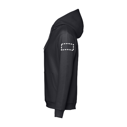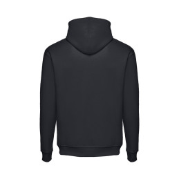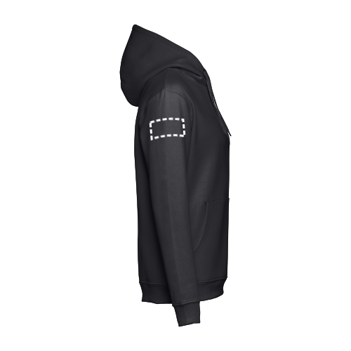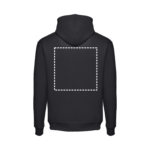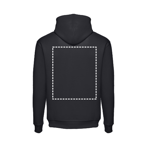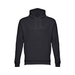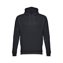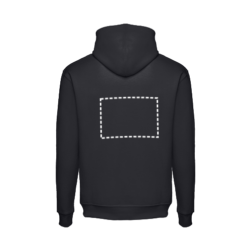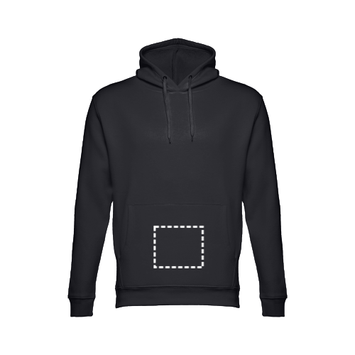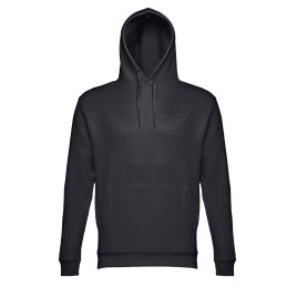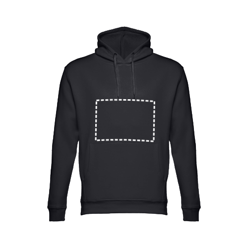 Sweatshirt (unisexe) avec capuche en 50% coton et 50% polyester (320 g/m²) et intérieur molleton. La capuche comprend des œillets et un cordon de serrage coloré. Sweatshirt avec poche marsupiale et côte 1x1 aux poignets et à la taille