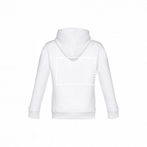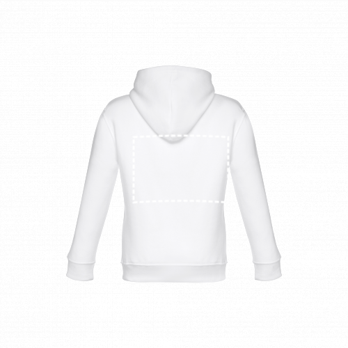 Sweatshirt (unisexe) en 50% coton et 50% polyester (320 g/m²) avec intérieur molleton. Poignets et ceinture côtelés 1x1, une poche marsupiale et une capuche avec des cordons de couleur contrastants