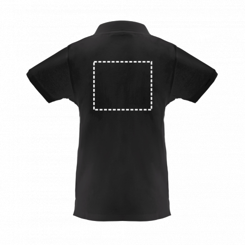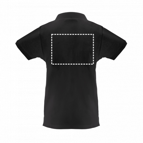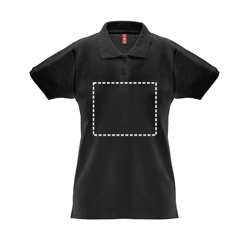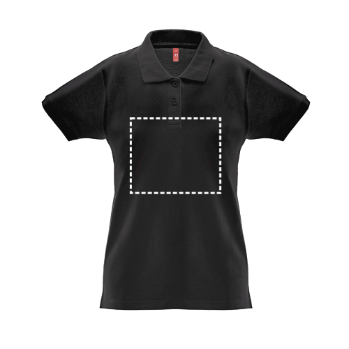 Polo à manches longues pour femme en maille piquée 100% coton (210 g/m²). Col renforcé par une bande en maille piqué. Contient une patte de boutonnage renforcée avec 4 boutons colorés (bouton de remplacement inséré dans la couture intérieure). Pièce découpée et cousue avec ouvertures latérales en bas. Étiquette amovible visible