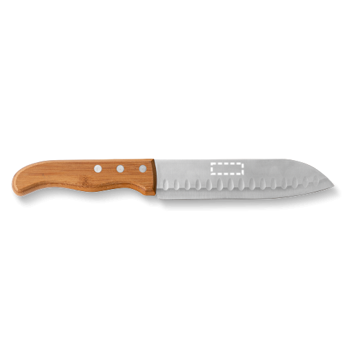 Ensemble d'ustensiles livré dans un étui en bambou. Composé de 6 articles en acier inoxydable et bambou : couteau principal, couteau moyen, couteau japonais, pince, fourchette et aiguiseur