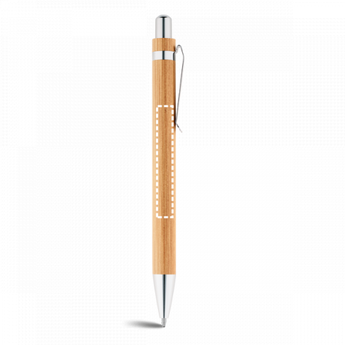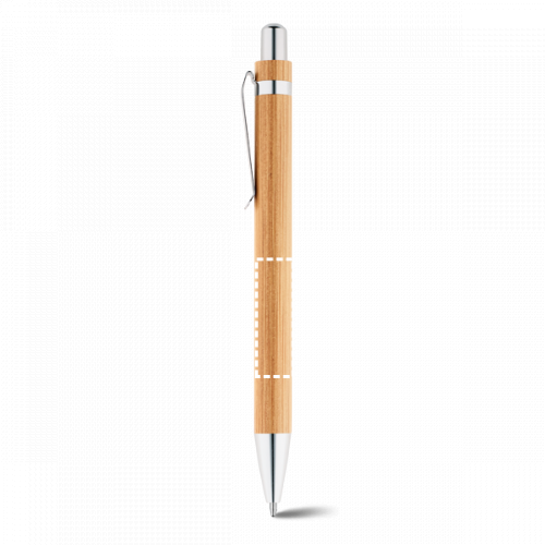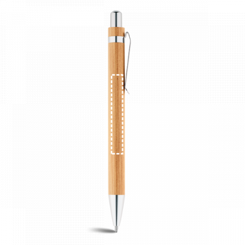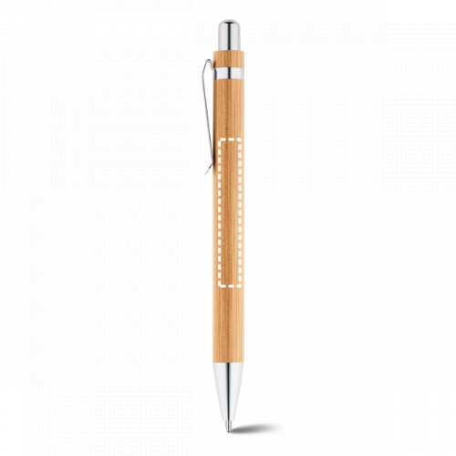 Stylo à bille en bambou avec mécanisme twist et clip métallique. Fourni dans une boîte en bambou. Encre bleue