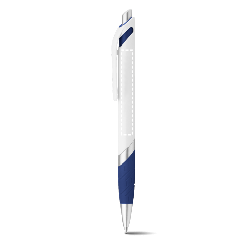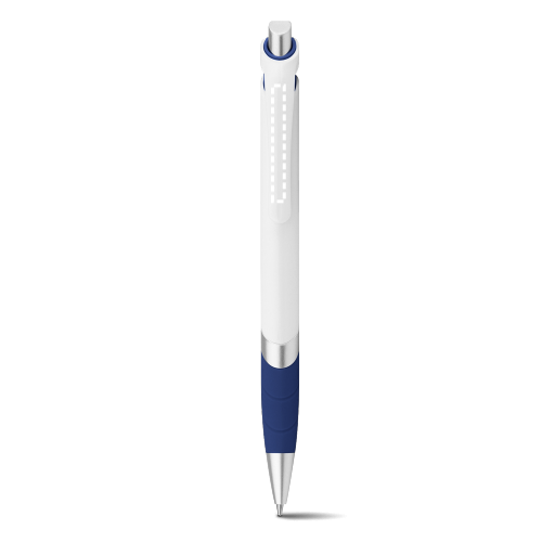 Stylo à bille en ABS avec une finition solide et brillante. Il est doté d'un grand clip et d'une écriture bleue. Les proportions du clip permettent diverses options de personnalisation. Disponible dans une large gamme de couleurs