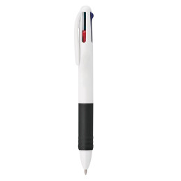 Stylo avec clip plastique et grip en gomme antidérapant disponibles en plusieurs coloris. Ecriture bleue