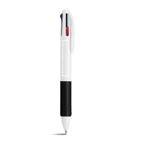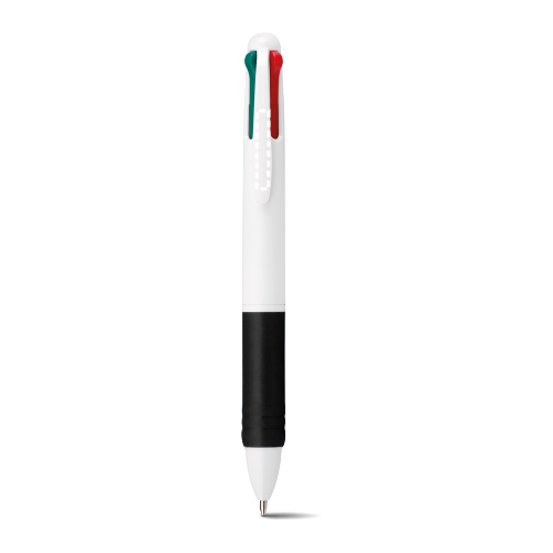 Stylo en plastique avec clip plastique et grip antidérapant en gomme. Disponible en plusieurs coloris. Ecriture bleue