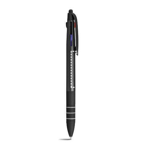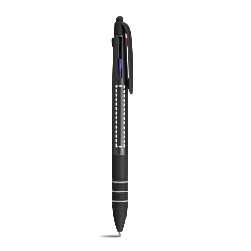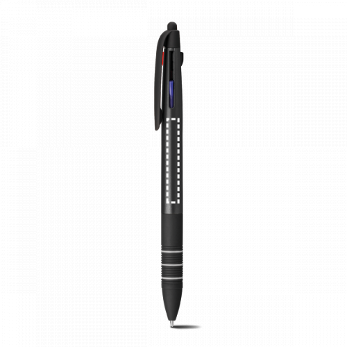 Stylo avec clip plastique et grip en gomme antidérapant disponibles en plusieurs coloris. Ecriture bleue
