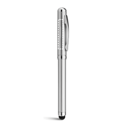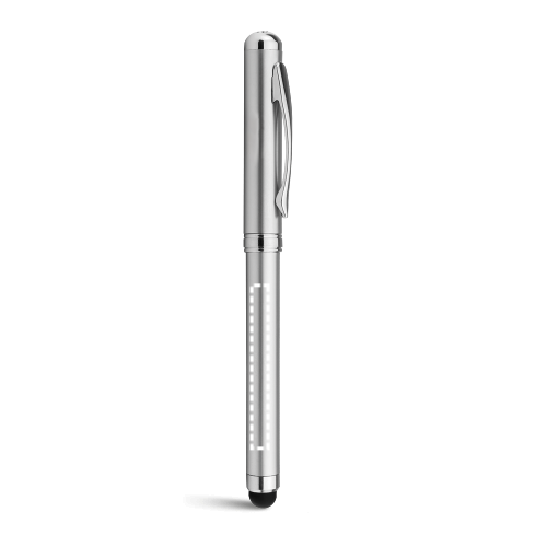 Stylo à bille en aluminium recyclé (100% rAL), avec pointe tactile en haut du stylo. Encre bleue