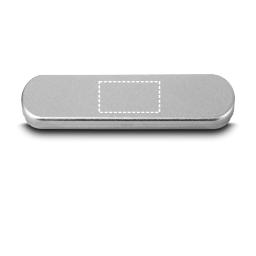 Stylo à bille en aluminium (94% recyclé), avec une forme de clip innovante qui se distingue par sa singularité et son élégance. Encre bleue