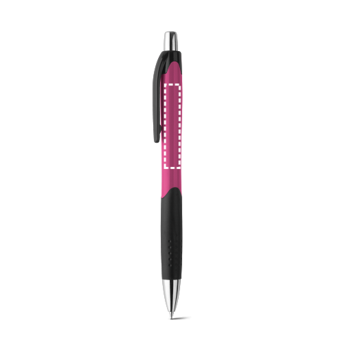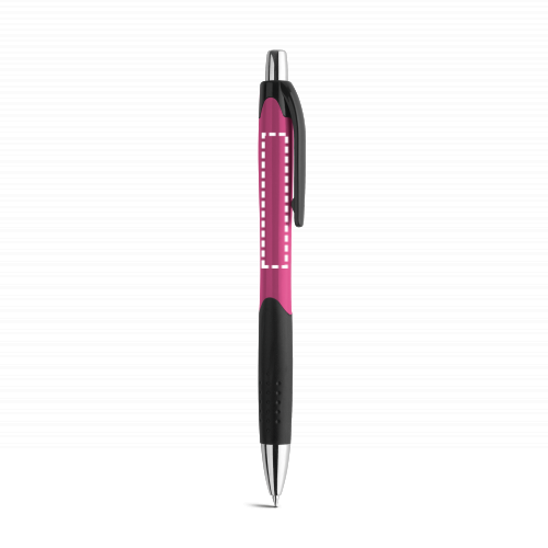 Stylo en plastique avec clip plastique et grip antidérapant en gomme. Disponible en plusieurs coloris. Ecriture bleue