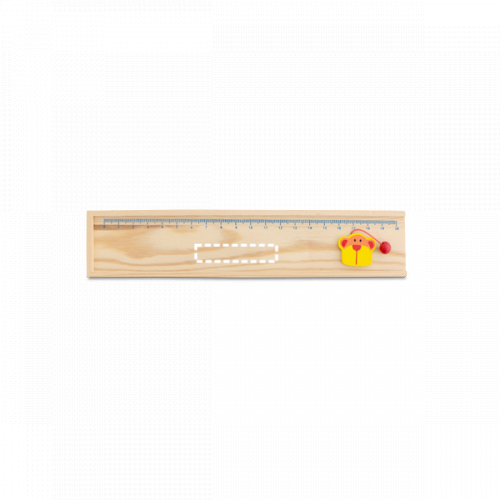 Set de coloriage en bois. Inclut 3 figurines avec rubans pour suspendre et 4 crayons de couleurs