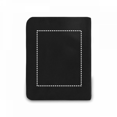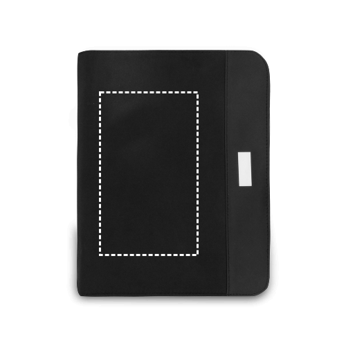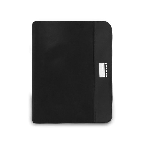 Conférencier A4 en simili cuir et 800D avec intérieur en microfibre. Contient une fermeture élastique et possède, à l'intérieur, un bloc de 20 feuilles lignées, 3 poches et un porte-stylo à bille (non inclus)