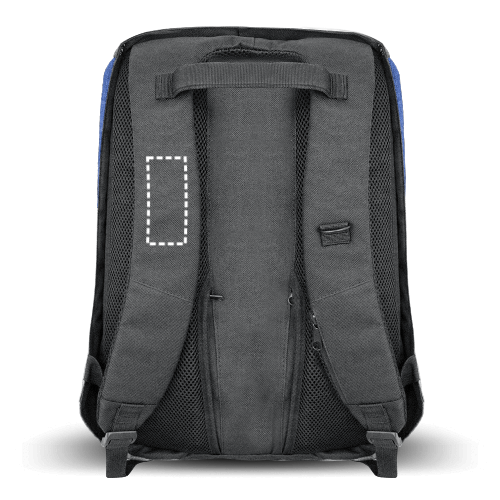 Sac à dos pour ordinateur en 600D haute densité. Le produit possède un compartiment avec deux divisions rembourrées pour ordinateur jusqu'à 15.6'' et tablette 9.7''. L'intérieur est doublé et rembourré. Contient une poche frontale et deux latérales. La partie arrière est rembourrée et possède un système d'appui matelassé pour le dos ainsi que des anses...