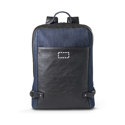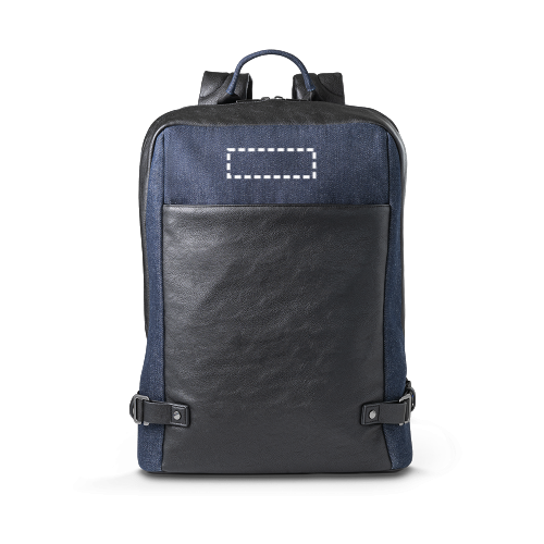 Sac à dos décontracté en denim recyclé (270 g/m²). Contient 2 poches avant et des anses réglables en sangle de coton. Les coutures intérieures sont renforcées pour plus de solidité