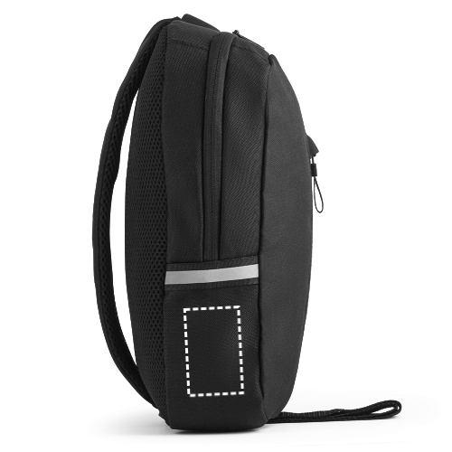 Sac à dos à sangle unique en 300D rPET et 600D rPET. Il possède un compartiment principal et une poche frontale avec fermeture éclair. Contient des éléments réfléchissants et une bande élastique intérieure pour transporter une bouteille. Les anses et le dos sont rembourrés