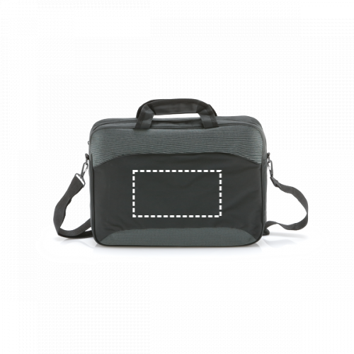 Sacoche pour ordinateur en 600D. Compartiment avec séparateur pour ordinateur jusqu'à 15.6'' avec intérieur doublé et rembourré avec poches intérieures. Contient une poche sur le devant et une bandoulière réglable avec renfort
