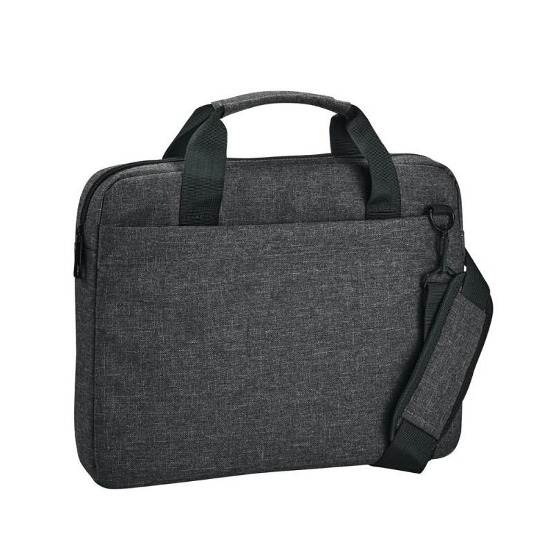 Sacoche pour ordinateur en 600D de haute densité. Compartiment principal doublé et matelassé, avec séparateur rembourré pour ordinateur jusqu'à 14''. Poche frontale et passant pour trolley. Anse d'épaule ajustable, avec renfort matelassé