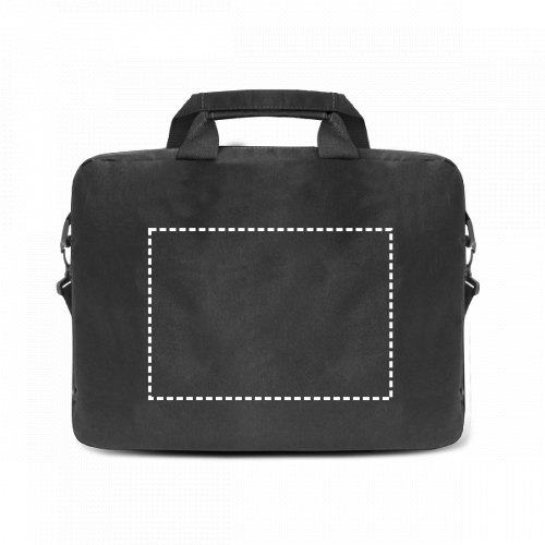 Sacoche pour ordinateur 600D de haute densité. Compartiment rembourré et matelassé avec séparateur pour ordinateur jusqu'à 14''. Avec poche frontale. Bandoulière avec renfort réglable et passant pour trolley