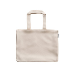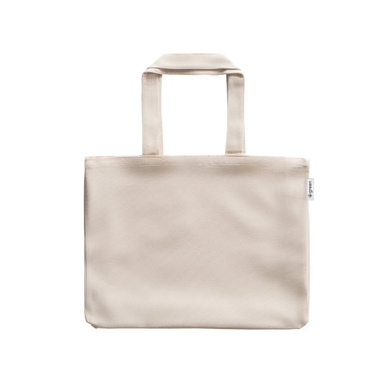 Sac pliable (140 g/m²) en coton (50%) et en coton recyclé (50%) avec des poignées de 38 cm