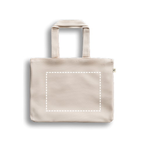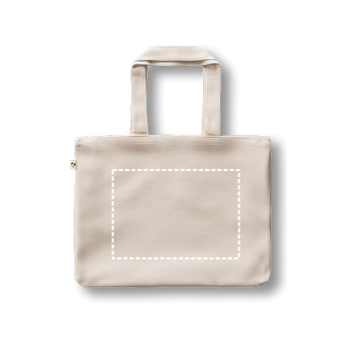 Sac 100% coton (220 g/m²), avec anses de 65 cm. Produit fabriqué selon une norme certifiée pour l'utilisation de substances nocives dans le textile