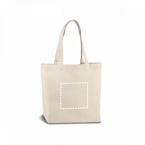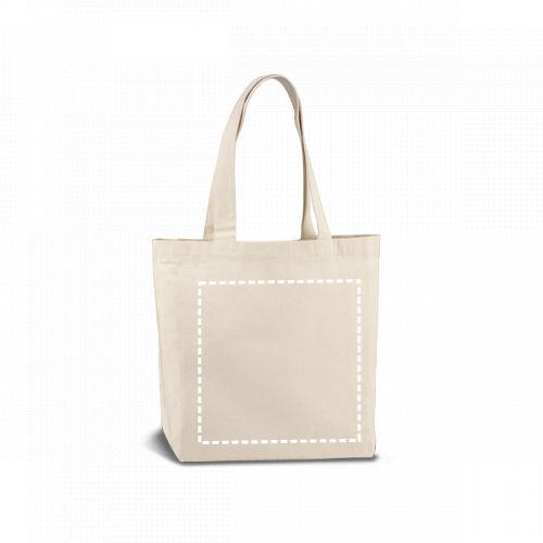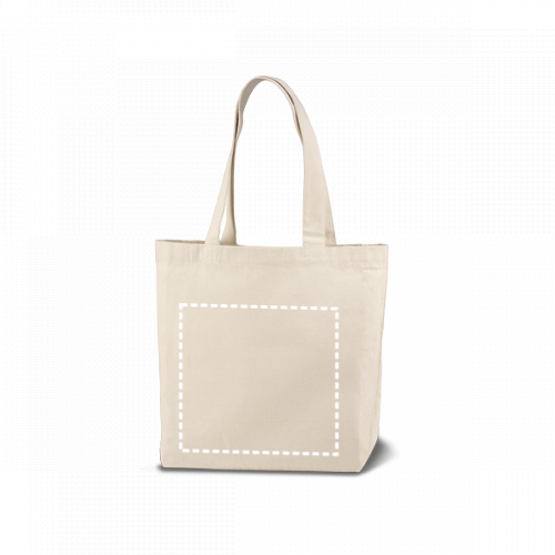 Sac 100% coton (180 g/m²) avec maille 100% coton sur le devant. Anses en webbing de 65cm. Sac idéal pour les courses
