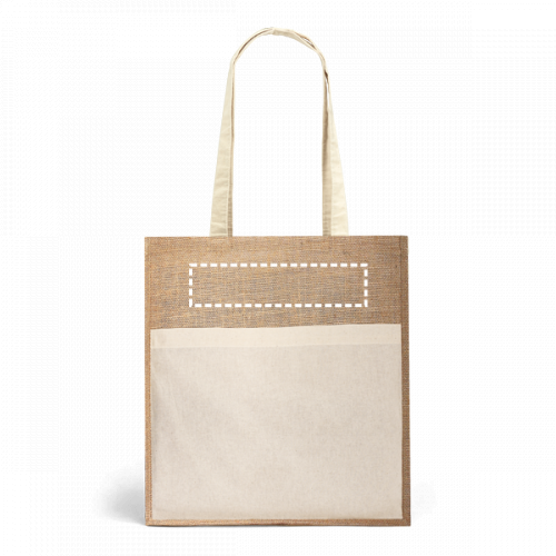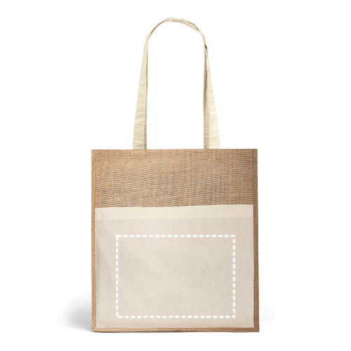 Sac en juco (275 g/m²) avec poche interieure 100% coton (120 g/m²) avec fermeture. Poignées de 60 cm en coton webbing bicolore
