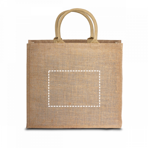 Sac en juco (275 g/m²) avec poche interieure 100% coton (120 g/m²) avec fermeture. Poignées de 60 cm en coton webbing bicolore