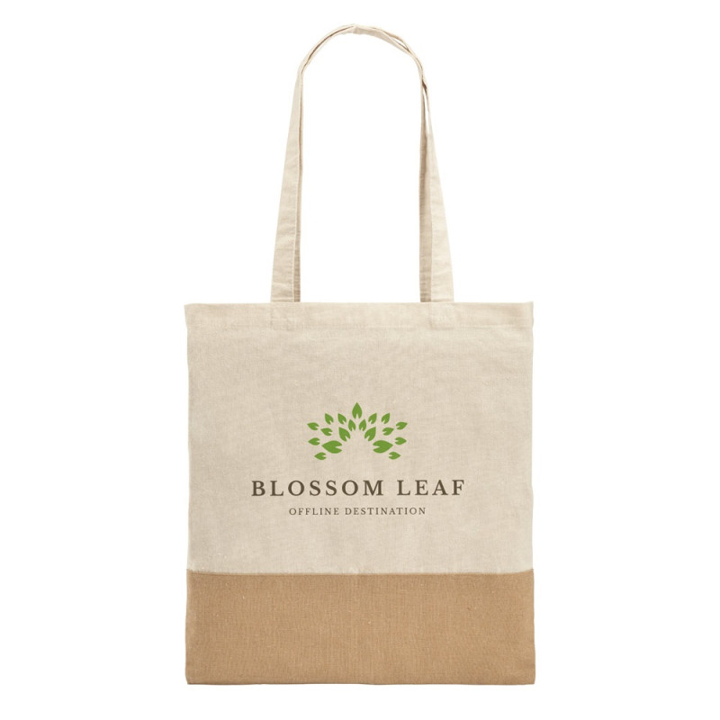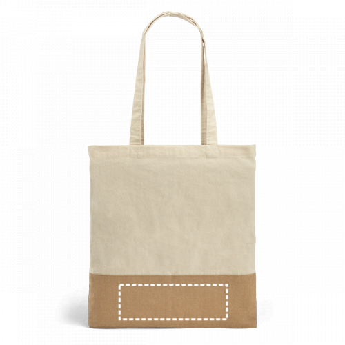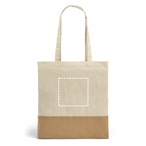 Sac en toile (320 g/m²), avec fond et côtés en jute laminé (350 g/m²) dans des tons naturels. Comprend des poignées de 60 cm