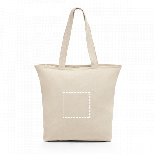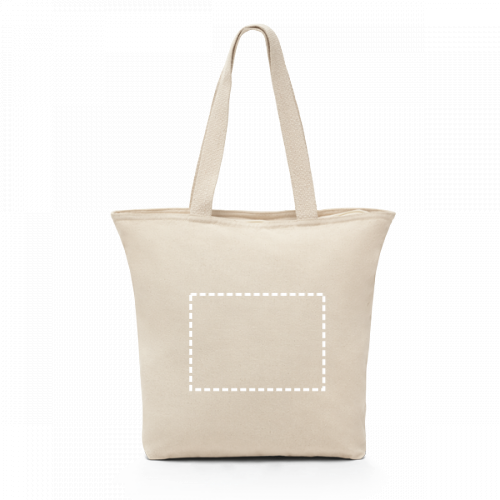 Sac 100% coton (180 g/m²) avec maille 100% coton sur le devant. Anses en webbing de 65cm. Sac idéal pour les courses