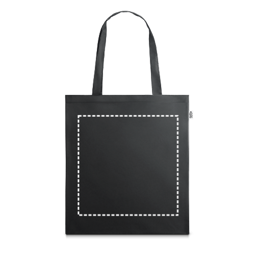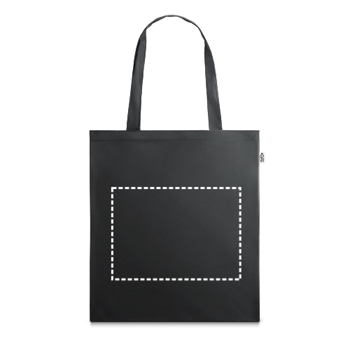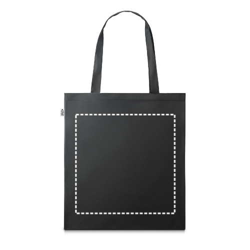 Sac en rPET 190T. Fabriqué à partir de plastique recyclé contribuant ainsi à la réduction des résidus. Anses de 60 cm