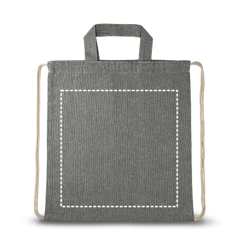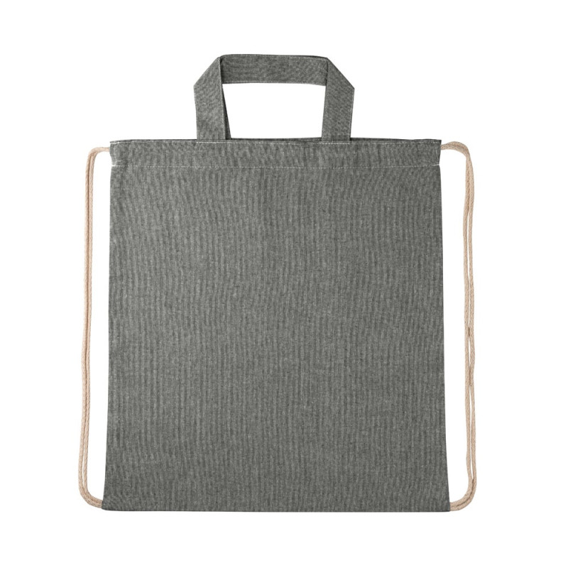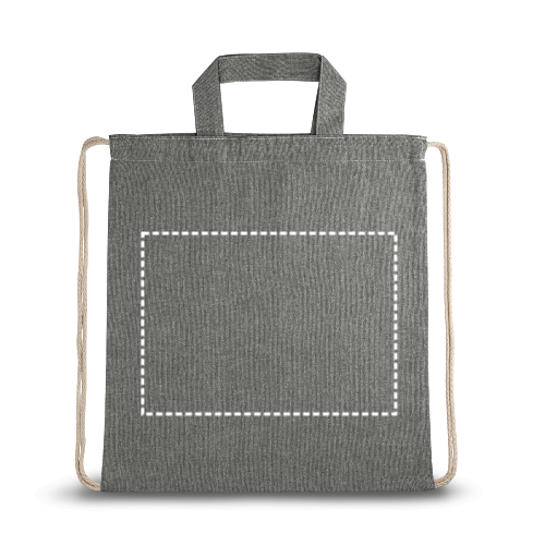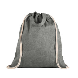 Sac à cordelettes en coton recyclé (140 g/m²), poche frontale avec fermeture éclair discrète et lanières en coton pour la fermeture