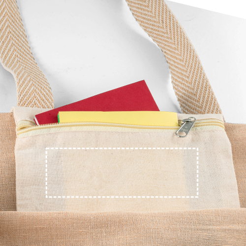Sac en toile de jute (240g/m²) avec anses de 65 cm et poche frontale 100% coton (140g/m²)