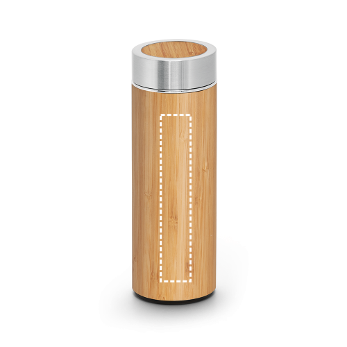 Bouteille thermos en bambou et acier inoxydable, avec corps à double isolation sous vide et infuseur de thé. Cette bouteille a une capacité allant jusqu'à 430 mL et est livrée dans une boîte cadeau. ø69 x 207 mm | Boîte: 72 x 210 x 72 mm
