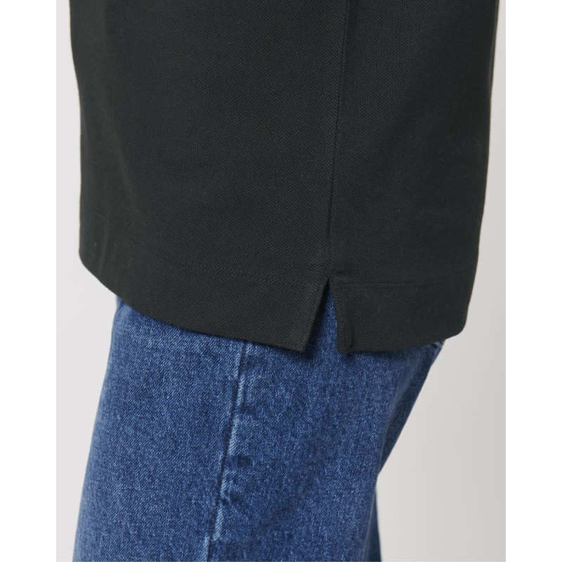 Manches montées Bord en côtes lisses au col et au bas de manches Bande de propreté en jersey simple et épais à l'intérieur du col Patte de boutonnage avec 2 boutons en coloris ton sur ton Fentes côtés avec finition intérieure en jersey simple et épais Surpiqûre simple sur les coutures épaule Surpiqûre double étroite au bas de corps