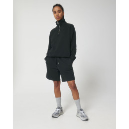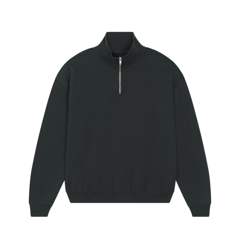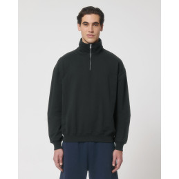 Sweatshirt unisexe a fermeture éclair sur un quart, coupe boxy et sec au toucher