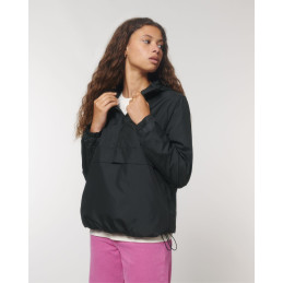 Capuche doublée avec arrêt en plastique ajustable et cordon élastique à l'intérieur