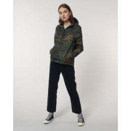 Capuche doublée avec arrêt en plastique ajustable et cordon élastique à l'intérieur