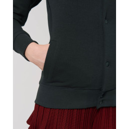 Manches montées Côte 1x1 à l'encolure Bande de propreté intérieur col en chevron 1/2 lune intérieur col dans la matière principale Boutons pression en métal milieu devant Poches passepoilées à l'avant Côte 1x1 au bas de manches et bas de corps Surpiqûre double aux emmanchures, bas de manches et bas de corps