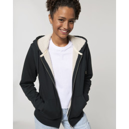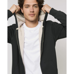 Le sweat-shirt zippé capuche unisexe doublé en sherpa