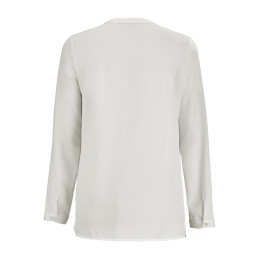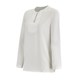 Blouse femme fluide manches longues. Coupe droite. Poignet fin avec fente. Encolure ronde avec décolleté en goutte.