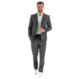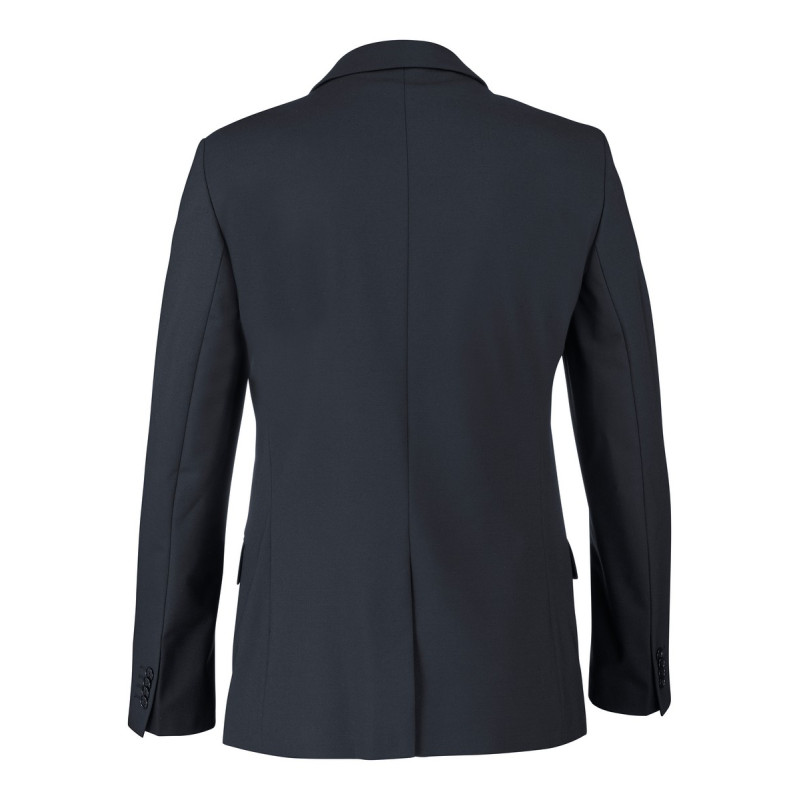 Veste costume homme doublé. Manches longues avec fente et boutons boutonnières. 2 poches basses double passepoil à rabat. Fermeture 2 boutons milieu devant. Poche poitrine oblique. 1 fente milieu dos. 1 boutonnière au col. 3 poches intérieures.