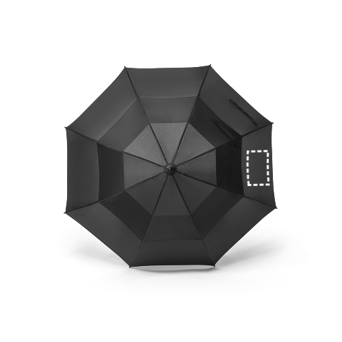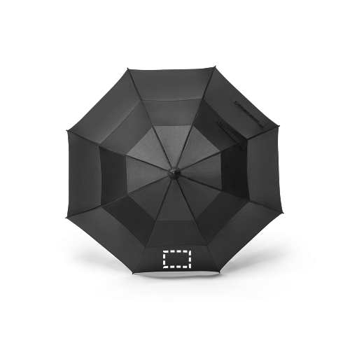 Parapluie pliable 23'' en pongé 190T avec 100% de polyester recyclé. Baleines en fibre de verre, manche en métal et poignée en ABS recyclé (35% recyclé). Le parapluie à ouverture et fermeture automatique, anti-tempête est pliable en 3 parties. Livré dans un sac