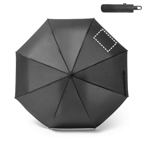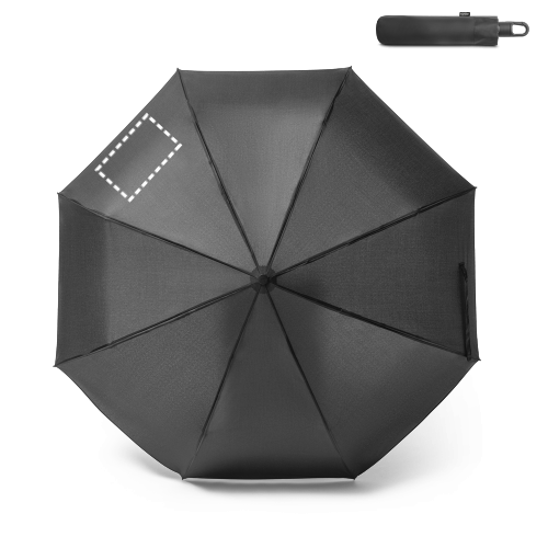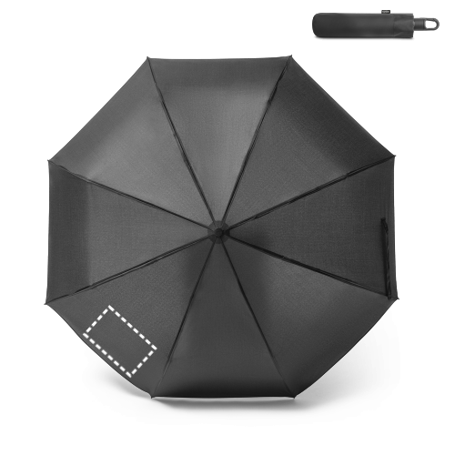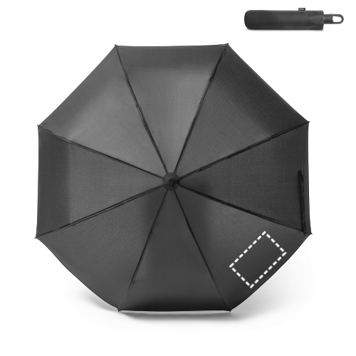 Parapluie pliable 21'' en pongé 190T avec 100% de polyester recyclé, baleines en fibre de verre, manche en métal et poignée en ABS recyclé (35% recyclé). Le parapluie à ouverture automatique est également anti-tempête et est pliable en 3 parties.Avec un sac de shopping en RPET, où vous pouvez le ranger pour le transport ou l'utiliser séparément