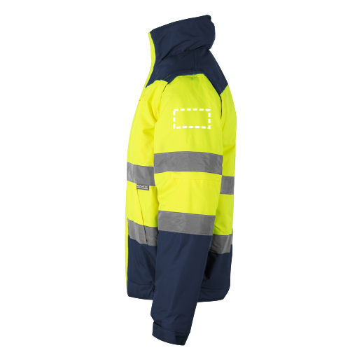 Veste soft shell bicolore (280g/m²), avec doublure polaire et membrane TPU, en polyester (96%) et élasthanne (4%). Tissu triple couche, avec fermeture à glissière centrale inversée de couleur contrastée , patte de boutonnage interne retournée en haut , poignets réglables par velcro. Bandes réfléchissantes sur la poitrine et les manches. Contient cinq...