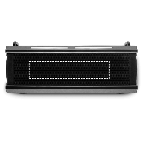 Enceinte portable en ABS. Avec transmission sans fil BT v5.0, égaliseur avec 4 modes préréglés, entrée USB-A et entrée auxiliaire 3,5 mm. Avec une puissance sonore de 16 W (2x 8 W) et une grande batterie de 3 000 mAh, il offre une autonomie d'environ 5 heures et fonctionne comme une batterie via le port USB-A. La sangle de transport incluse vous permet de transporter ou de le suspendre facilement et en toute sécurité. Vous pouvez contrôler le volume et la liste de lecture depuis votre appareil mobile. Les grandes grilles permettent une plus grande zone de personnalisation. Comprend un câble de charge USB-C et un câble audio de 3,5 mm. Fournie dans une boîte cadeau blanche