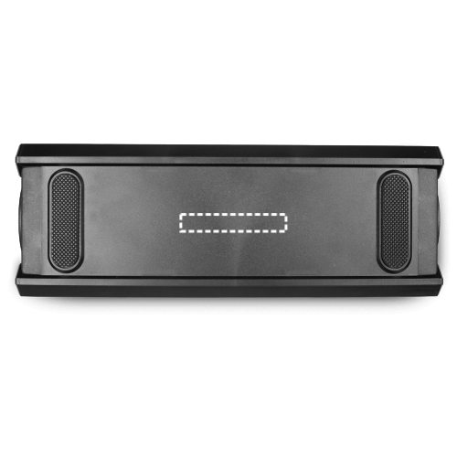 Enceinte portable en ABS. Avec transmission sans fil BT v5'0, égaliseur avec 4 modes préréglés, entrée USB-A et entrée auxiliaire 3.5 mm. Avec une puissance sonore de 16 W (2x 8 W) et une grande batterie de 3 000 mAh, il offre une autonomie d'environ 5 heures et fonctionne comme une batterie via le port USB-A. La sangle de transport incluse vous permet de transporter ou de le suspendre facilement et en toute sécurité. Vous pouvez contrôler le volume et la liste de lecture depuis votre appareil mobile. Les grandes grilles permettent une plus grande zone de personnalisation. Comprend un câble de charge USB-C et un câble audio de 3.5 mm. Fournie dans une boîte cadeau blanche. 250 x 100 x 90 mm