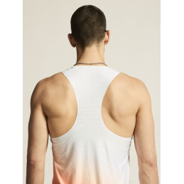 Le Race Day Singlet est un débardeur de course haute performance qui permet aux athlètes d'élite exigeants de repousser leurs limites au plus haut niveau de course longue distance. Conçu pour conquérir les marathons les plus prestigieux du monde, ce débardeur de qualité professionnelle est composé d'un maillot hautement fonctionnel avec des ouvertures fendues élastiques qui se dilatent lorsque le tissu est étiré, offrant un transport d'humidité exceptionnel et une ventilation améliorée pendant la course intense. Conçu pour des performances d'élite, le débardeur est également doté d'ourlets scotchés au niveau du cou et des manches qui minimisent les frottements, vous permettant de rester concentré sur votre rythme et votre forme. • Tissu jersey léger fabriqué à partir de polyester recyclé et d'élasthanne • Les ouvertures découpées au laser dans le tissu offrent une meilleure ventilation lorsqu'il est étiré • Conception dos nageur • Emmanchures échancrées • Ourlets scellés au niveau du cou et des emmanchures pour minimiser les frottements • Ourlet scotché en bas avec ruban adhésif visible au dos • Fentes latérales