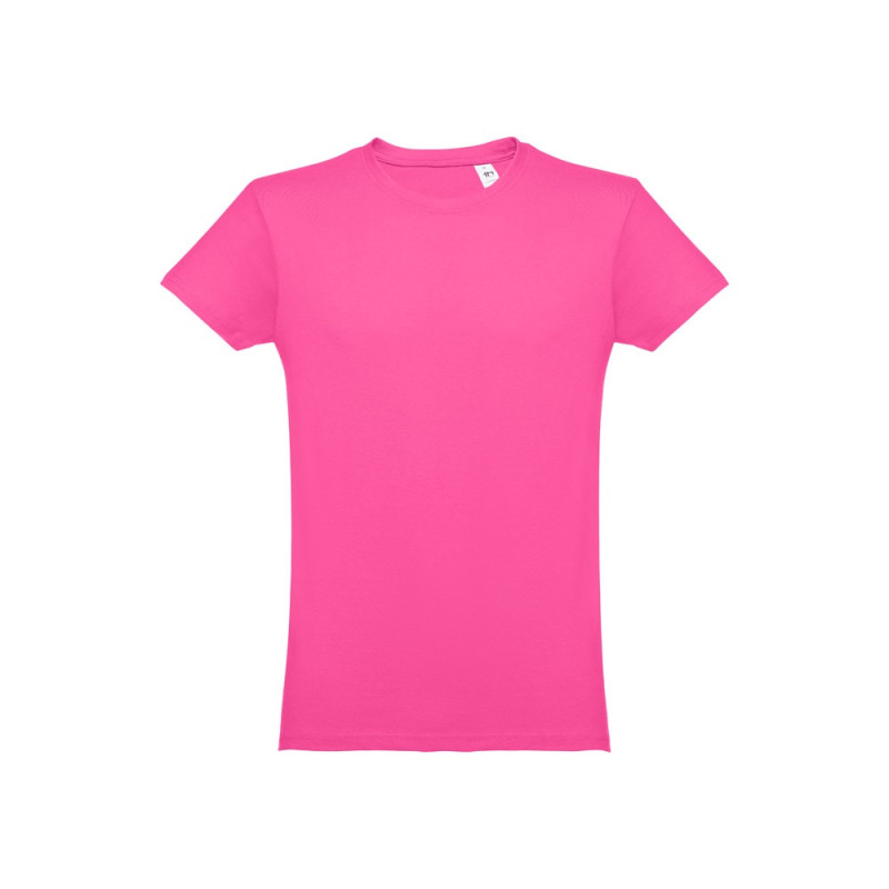 T-shirt pour homme de forme tubulaire et coupe régulière en maille jersey 100% coton (150 g/m²) avec fil de coton cardé (couleur 183 : 90% coton/10% viscose). Contient un col côtelé 1x1 avec bande de renfort en jersey et double couture sur les manches et le bas