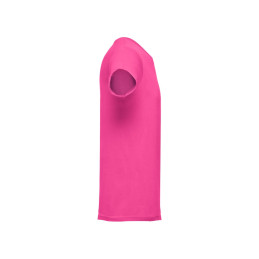 T-shirt ceinturé pour femme en maille jersey 100% coton (150 g/m²) avec fil de coton cardé. Contient un col fin en jersey double avec un ruban de renfort en satin. Pièce coupée et cousue avec double couture sur les manches et le bas