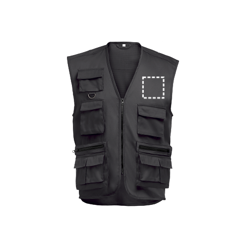 Gilet multi-poches en polyester (65%) et coton (35%) (200 g/m²) avec traitement hydrofuge. Convient aux reporters et autres professions de terrain. Tailles: S, M, L, XL, XXL